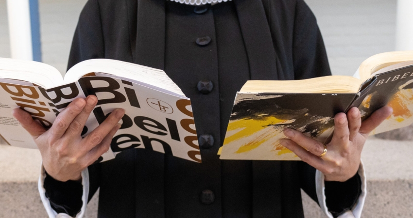 Ny autoriseret bibeloversættelse 2036 Danmark skal have en ny, autoriseret bibeloversættelse, som udkommer i 2036. Her kan du følge projektet: Find spørgsmål og svar, og se hvordan du kan støtte. Køb bøgerne Kirkeårets læsninger i prøveoversættelse Læs om principperne bag FAQ Ny podcast stiller skarpt på bibeloversættelse Bibelen skal have opdateret sit sprog og i ny podcastserie spørger vi: Hvad i himlens navn foregår der? Giv respons på den nye oversættelse Bibelselskabet inviterer alle til at læse med og give respons på det foreløbige arbejde. De første prøveoversættelser er udkommet Danmark skal have en ny autoriseret bibeloversættelse og nu kan du læse de første prøveoversættelser. Støt den nye bibeloversættelse Vi har brug for hjælp til financieringen af oversættelsen. Du kan både støtte via gavebrev eller give et bidrag online. Støt med gavebrev Giv et bidrag online Bliv medlem og modtag prøveoversættelser som e-bog Bliv medlem af Bibelselskabet og modtag løbende e-bøger med Bibelen i prøveoversættelse som en af dine medlemsfordele. De første to e-bøger er allerede klar. Læs mere Invitér til samtale- og læsegrupper om ny bibeloversættelse Her finder du fire oplæg til, hvordan du kan arrangere samtale- og læsegrupper om den kommende bibeloversættelse i din kirke. Læs mere Book et foredrag om bibeloversættelse I 2036 skal vi have en ny bibeloversættelse. Men hvorfor egentlig? Hvordan gør man? Og hvorfor tager det så lang tid? Book et foredrag og bliv klogere på den kommende autoriserede bibeloversættelse. Book et foredrag Se, hvem der er med Arbejdet med bibeloversættelsen er organiseret med en chefredaktion, redaktionsgrupper for Det Gamle Testamente og Det Nye Testamente samt en række oversætterteams. Få overblikket her. Læs mere