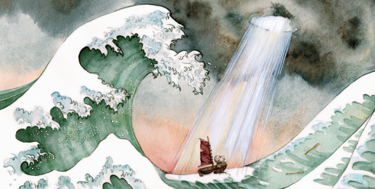I sin nye børnebog fremhæver Bjarne Reuter det øjeblik, hvor Noa er ude på havet i sin fiskerbåd og møder Gud. Gud beder ham gøre noget helt naturstridigt, nemlig bygge en kæmpe ark på den tørre mark. Og mens Noa taler med Gud, ved læseren, at Noas yngste søn Jafet dykker, dybt nede i havet, og måske ikke når op i tide! Senere kommer naturligvis bådebyggeriet, alle dyrene og det voldsomme regnvejr. Det er ikke sidste gang, man som læser holder vejret …