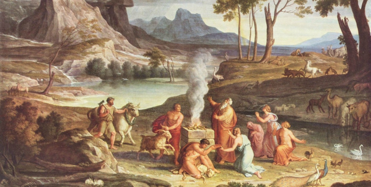Første Mosebog 8,20-21 Noa ofrede af de rene dyr og af fuglene.